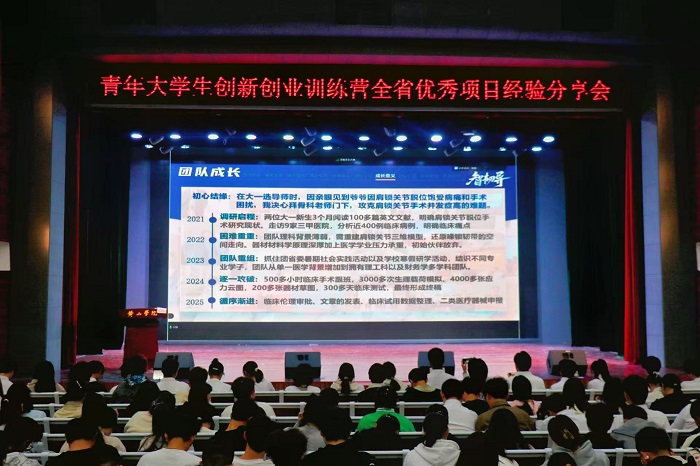 为激发营员们的创新思维与热情,助力校园创新创业生态蓬勃发展。11月15日下午,校团委在率水校区大学生活动中心大礼堂举办黄山学院青年大学生创新创业训练营校外优秀团队经验分享会,特邀第十一届安徽省“挑战杯”学术科技竞赛银奖来自安徽农业大学的马乐璇、中国国际大学生创新大赛(2025)国家级铜奖来自蚌埠医科大学的吴焕、第十四届“挑战杯”中国大学生创业计划竞赛全国铜奖、第十八届“挑战杯”中国大学生课外学术科技作品竞赛黑科技专项赛铜奖、中国大学生创新大赛铜奖(2025)来自安徽师范大学的杨昊翔作经验分享,青创营全体学员参加此次活动。