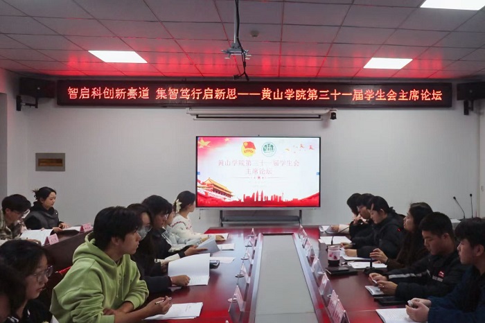 11月26日下午,校学生会于率水校区大学生活动中心二楼会议室召开黄山学院第三十一届学生会主席论坛。校学生会指导老师张瑞、艺术学院石建飞、黄山学院第七届学生会委员会委员及校、院两级学生会主席团成员参与本次会议,会议由校学生会钱俊希主持。