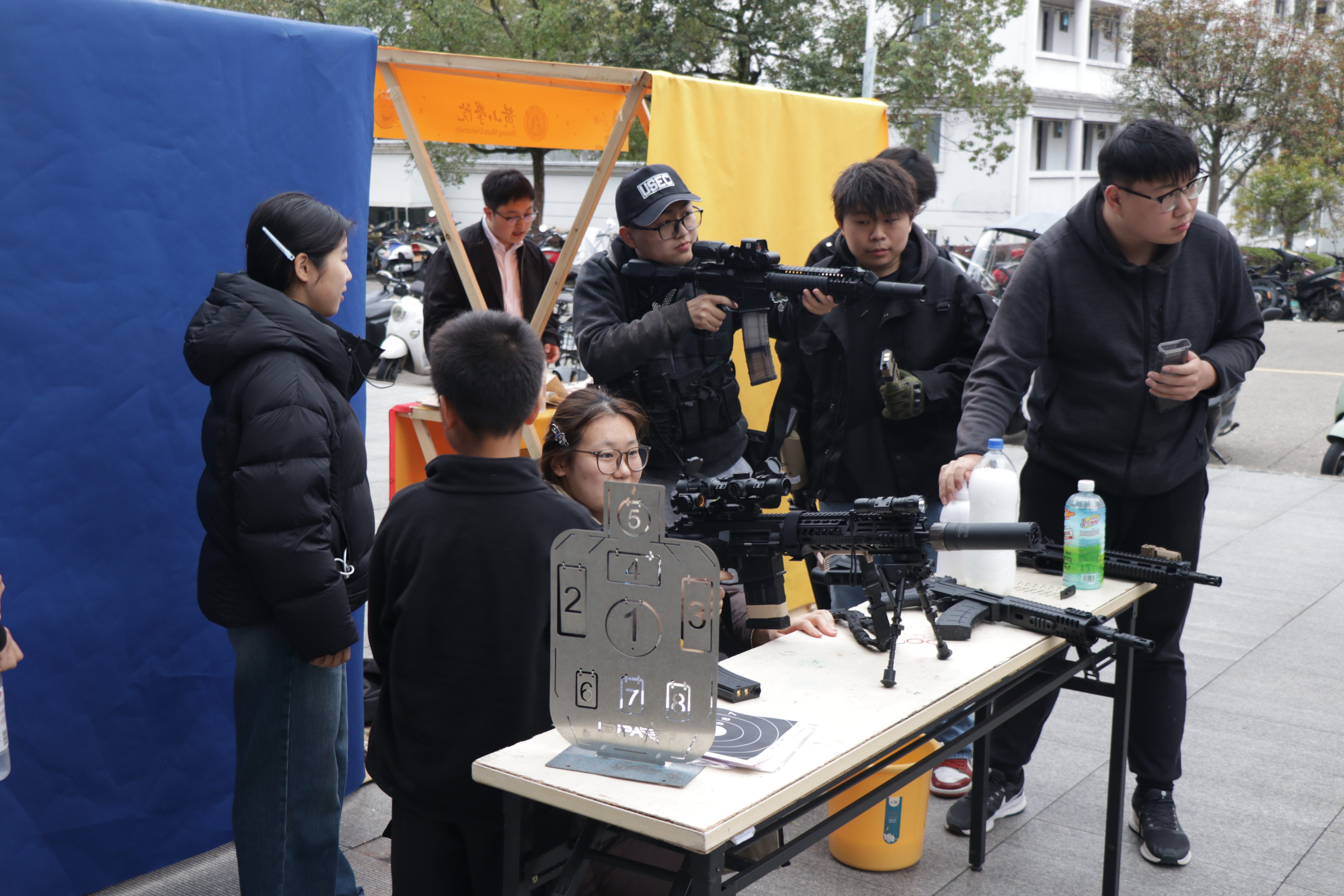本次校园集市活动由大学生乡村振兴实践社、剪纸协会、大学生书画协会、国防育英社联合举办,搭配学生现场歌唱表演,吸引了众多同学驻足参与,现场氛围热烈。各社团特色鲜明、亮点纷呈:乡村振兴实践社带来卡通拼豆等创意手作,小巧精致、趣味十足,广受学生喜爱;书画协会与剪纸协会以笔墨传情,同学们挥毫书写心愿,在字帖创作中感受书法艺术的熏陶,收获满满祝福;剪纸协会带来的精巧传神的剪纸作品尽显非遗魅力,其中袁隆平院士肖像剪纸更是将文化底蕴与时代精神巧妙融合;国防育英社带来枪击体验项目,让大家在感受精准与力量的同时,增强国防意识、厚植家国情怀;悠扬动听的歌声轮番上演,为集市增添了灵动与温情。