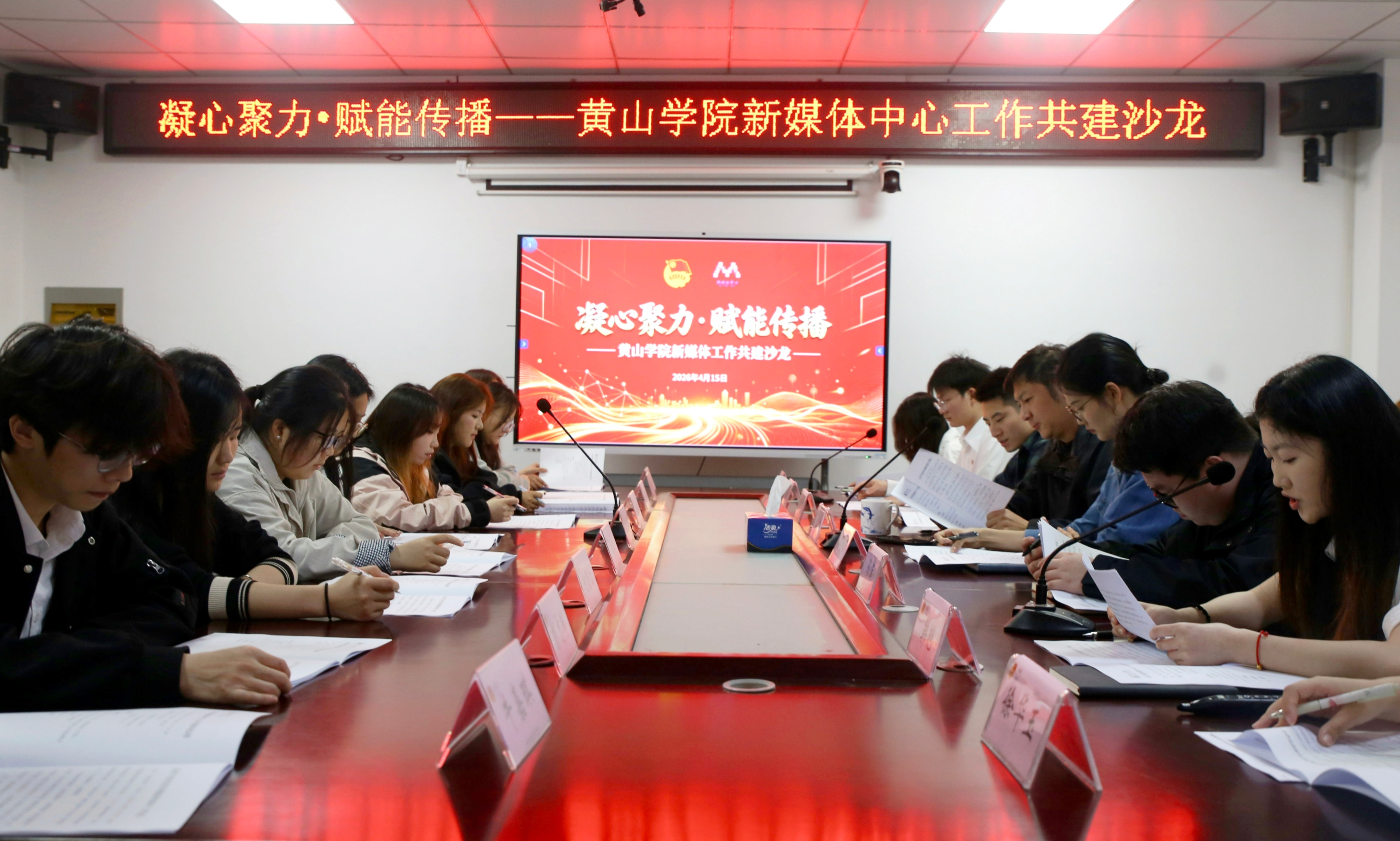 4月15日下午,黄山学院新媒体中心在大学生活动中心二楼会议室成功举办“凝心聚力·赋能传播”新媒体工作共建沙龙。本次沙龙以优化校院联动机制、规范内容生产流程、提升校园传播效能为核心目标,进一步凝聚校院新媒体工作合力,推动校园网络思政育人工作提质增效。校团委书记汪洋出席会议,各二级学院新媒体学生负责人及校新媒体中心工作人员参会。
